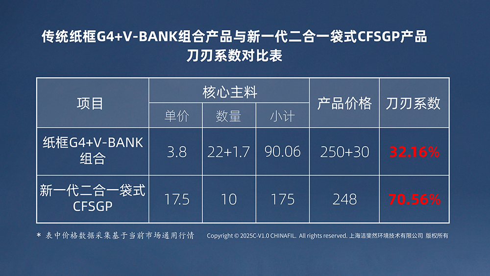 2. 主过滤成本节省:按容尘显示,CFSGP单套售价248元(含税)即可相当于传统组合570元的容尘时效: