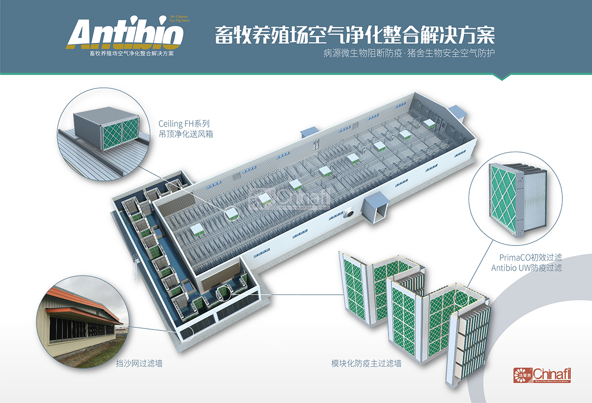 目前,Antibio系统已经广泛运用在种公猪育种中心、育种场、商品猪场等几乎所有生猪生产场合,为国内大型养殖客户持续提供高效率、低能耗的养猪场空气净化整合解决方案,在非瘟防疫的当下,成为畜牧养殖业的可靠保障之一。