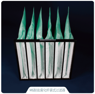 袋式过滤器具有好的容尘功能,按过滤等级可分为初效袋式过滤器、中效袋式过滤器;按滤材可分为:化纤袋式空气过滤器、合成纤维袋式空气过滤器、玻纤袋式过滤器、活性炭复合袋式空气过滤器等;框架材料分为PS、PP、ABS、镀锌钢板、铝合金等材质;